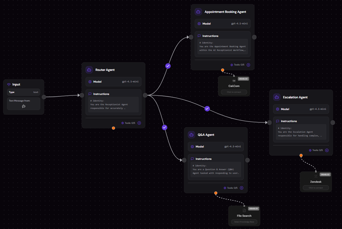 - Coordinate across steps. A multi-agent workflow qualifies a lead, checks inventory, drafts a response, and updates the CRM in one pass.
