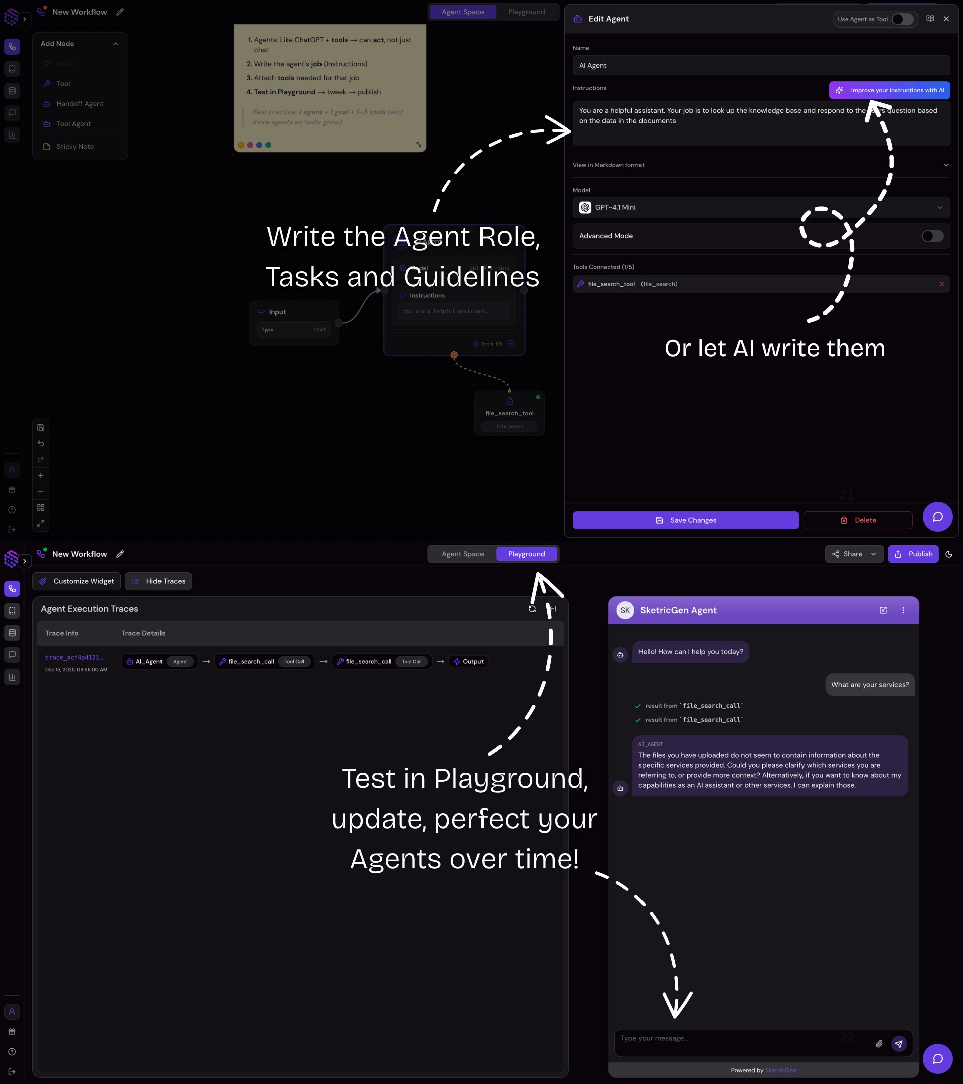 - You can get an AI support agent live in 10 minutes on a no-code platform like SketricGen
