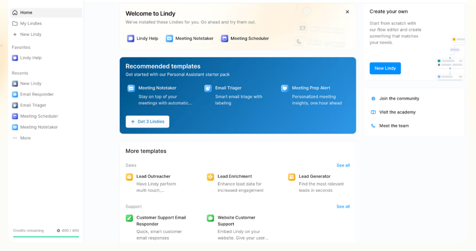 - Pre-built "Lindy" agents for common tasks (scheduling, email, CRM)