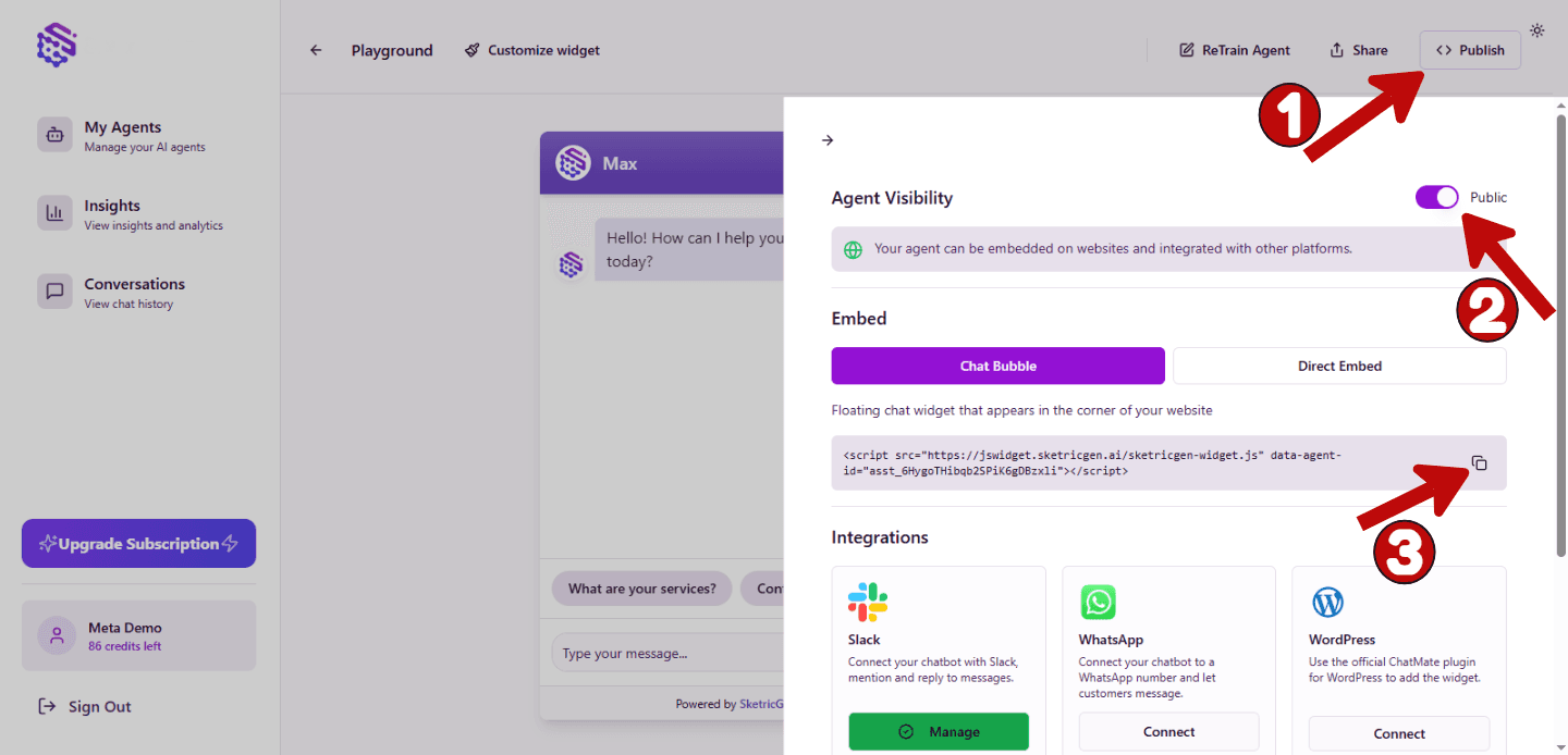 Ready to get started? Create your free SketricGen account and deploy a Wix AI agent in minutes!