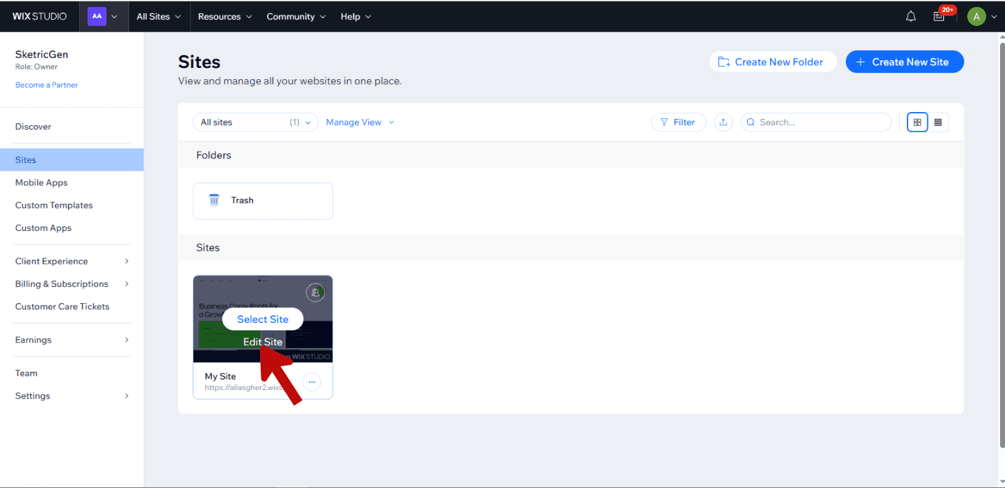 If you manage multiple sites, select the specific site where you want to add the Wix chatbot.