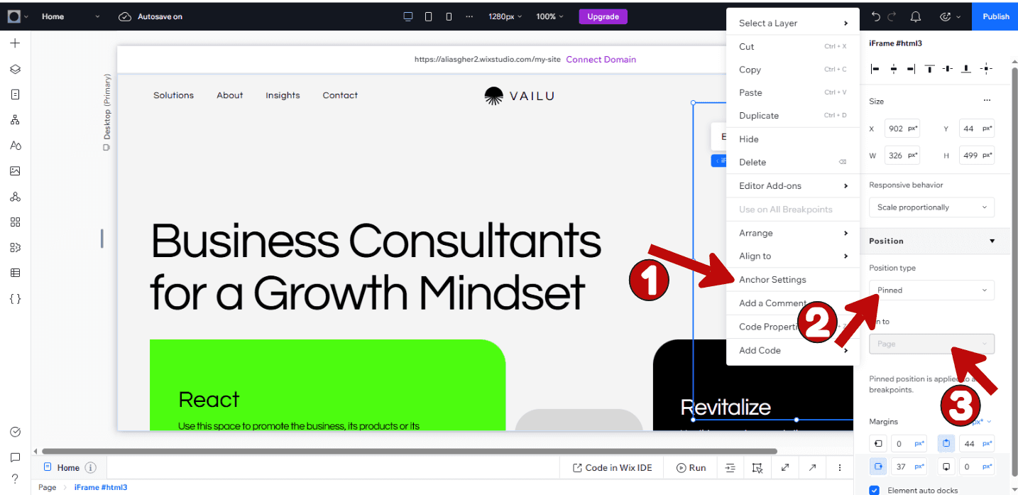 To make your chatbot easily accessible, add an anchor and pin the widget to ensure it appears as a floating bubble. This makes it easy for visitors to interact with your Wix AI chat assistant without disrupting their browsing experience.