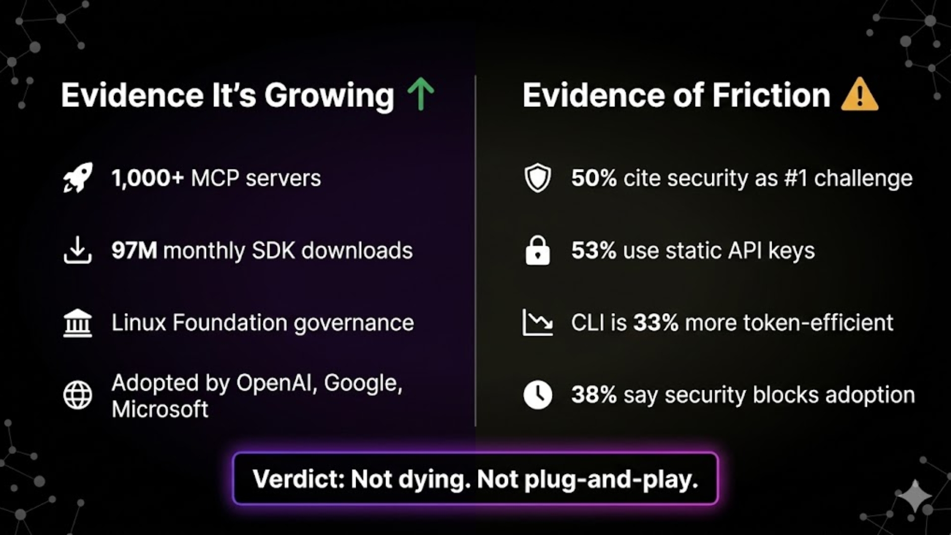 Many people wrote MCP off after early production problems. Those complaints are real: security gaps, token overhead, and complexity. But the market signals show the protocol is still growing.